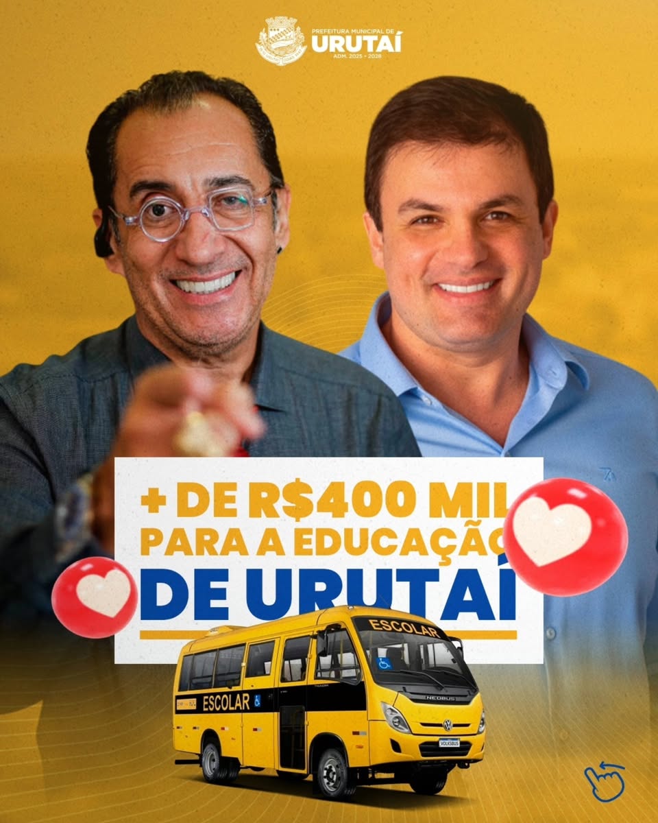 A Prefeitura de Urutaí recebeu um novo ônibus escolar do Programa Caminho da Escola, que vem para reforçar a frota e melhorar ainda mais as condições de transporte dos estudantes.