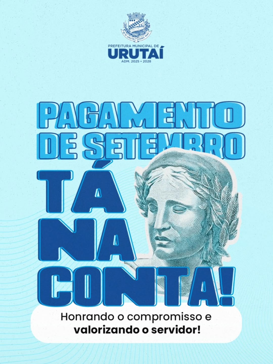 Alô, alô, servidor municipal de Urutaí. O salário de setembro Tá Na Conta!