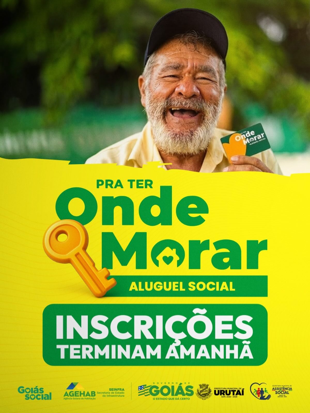 Está na reta final o prazo para as inscrições do programa Aluguel Social em Urutaí, uma iniciativa do Governo de Goiás, por meio da AGEHAB, com apoio da Prefeitura de Urutaí.